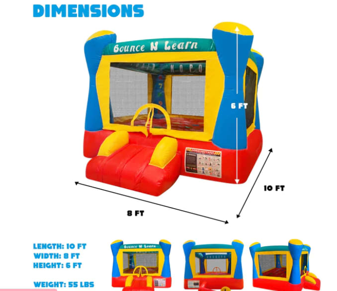If you are looking for the perfect bounce house for the little ones, you have found it! This comes in at a smaller size, making it easier for smaller children to enter and exit. But they wont miss out on any fun just because this bounce house is smaller, it still packs in the fun with ABC's on the top, shapes on the bottom, and colors all around to learn and bounce with.